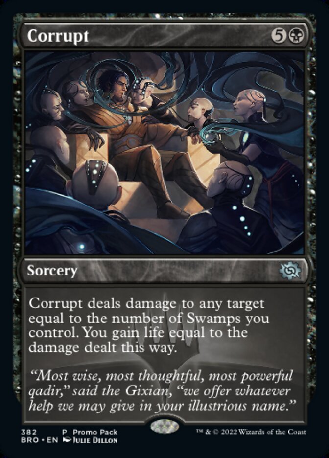 Corrupt deals damage to any target equal to the number of Swamps you control. You gain life equal to the damage dealt this way.