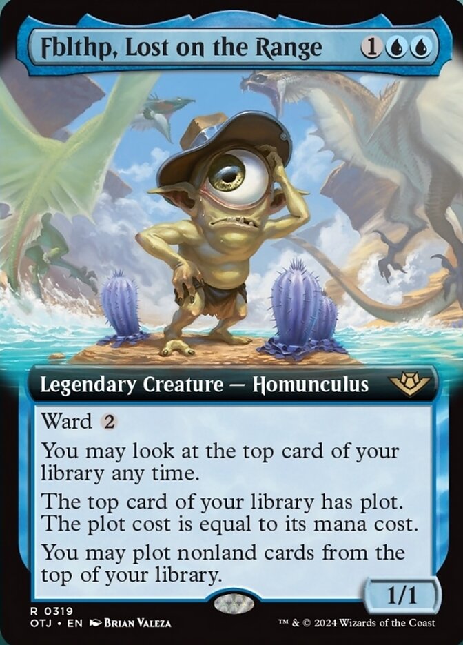 Ward {2} You may look at the top card of your library any time. The top card of your library has plot. The plot cost is equal to its mana cost. You may plot nonland cards from the top of your library.